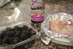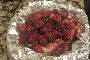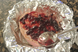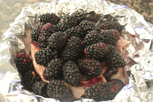 Dinner is ready! This method works equally well with any Barbeque sauce instead of the blackberries and jam. Try it that way too.