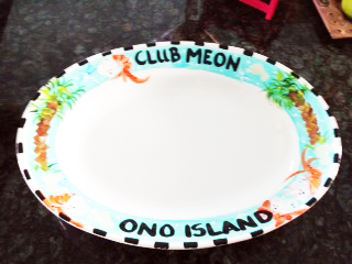 I grabbed my favorite platter, and started assembling the dip.  Now remember, this was LAST MINUTE, no time for photos so there are no pictures of the ingredients before preparation.  Just picture a package of cream cheese, a jar of jam, dry roasted peanuts, green onions, bacon and coconut.