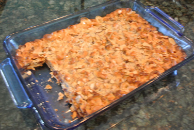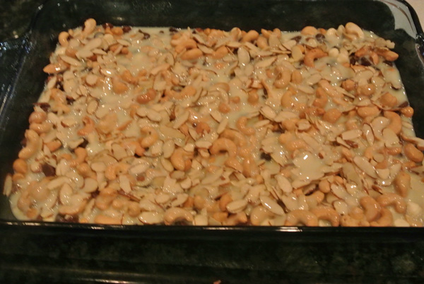 Yum, looks good already! Return to 375 oven and bake for 20-25 more minutes until golden. Watch carefully at the end so the nuts don’t get too brown. Remove from oven and let cool thoroughly before cutting.