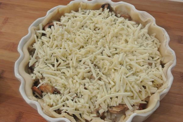 bacon, mushrooms, onion and creamy ricotta cheese baked in a flaky crust for a savory brunch or dinner pie
