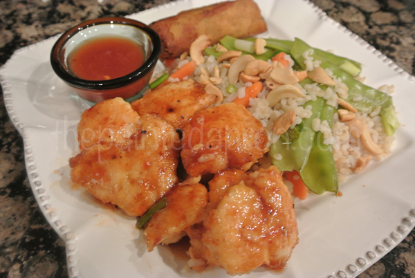 I also added a prepared frozen spring roll and some sweet n sour dipping sauce on the side. The chicken was so good, you really don’t need much else! Drizzle some sauce from the pan over the chicken when you plate it.
