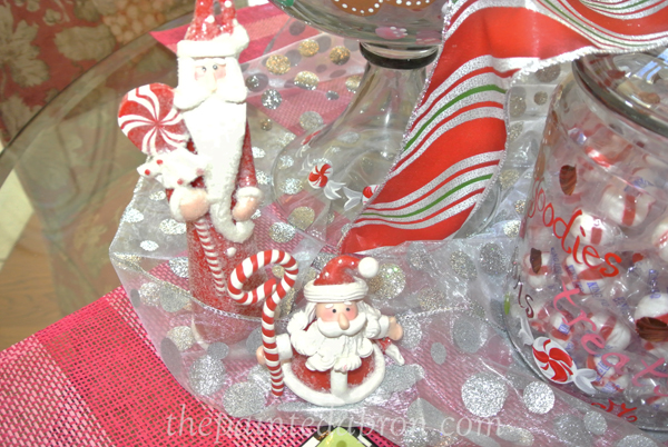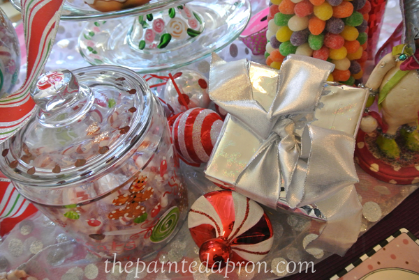 and a small candy jar full of peppermints….ohhh, I wonder what is in that silver wrapped gift?