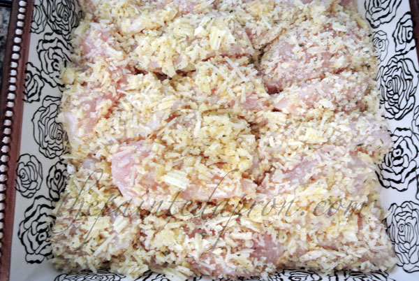 • Crush potato chips and mix with Ranch seasoning, and Parmesan cheese.