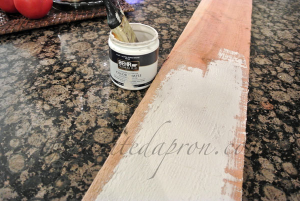 With leftover wall paint samples I painted a light area down the center of the long plank for the Cantina sign