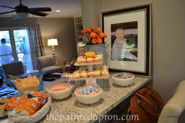 We provided Blue Moon Cupcake Bites and orange candy for dessert