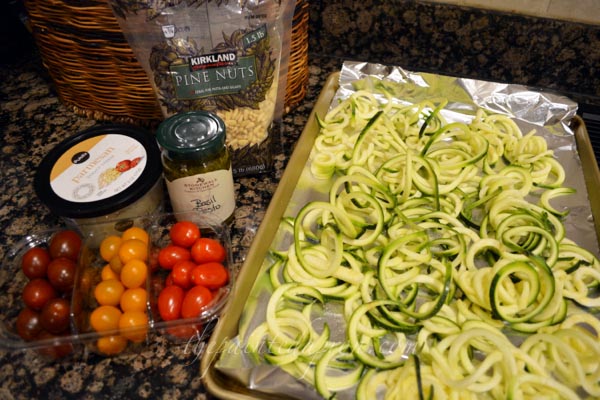 zoodles with pesto thepaintedapron.com