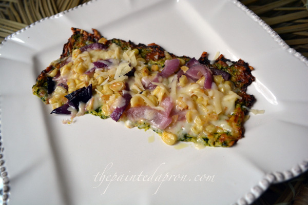 corn and red onion pizza with zucchini crust thepaintedapron.com