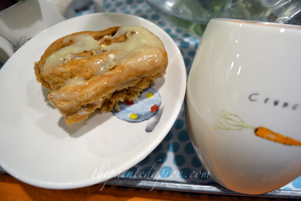 carrot cake sweet roll with maple cream cheese icing thepaintedapron.com