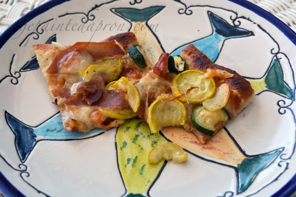 zucchini and prosciutto pizza thepaintedapron.com