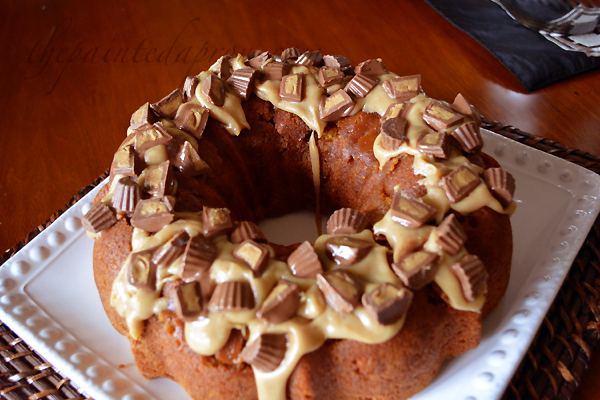 caramel peanut butter cup cake thepaintedapron.com