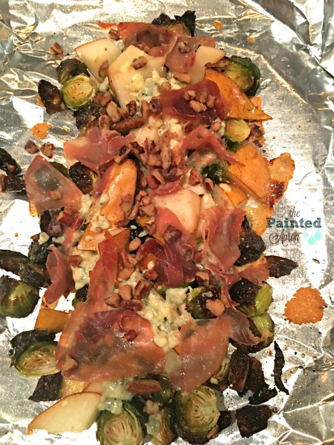 roasted Brussels, pears, prosciutto
