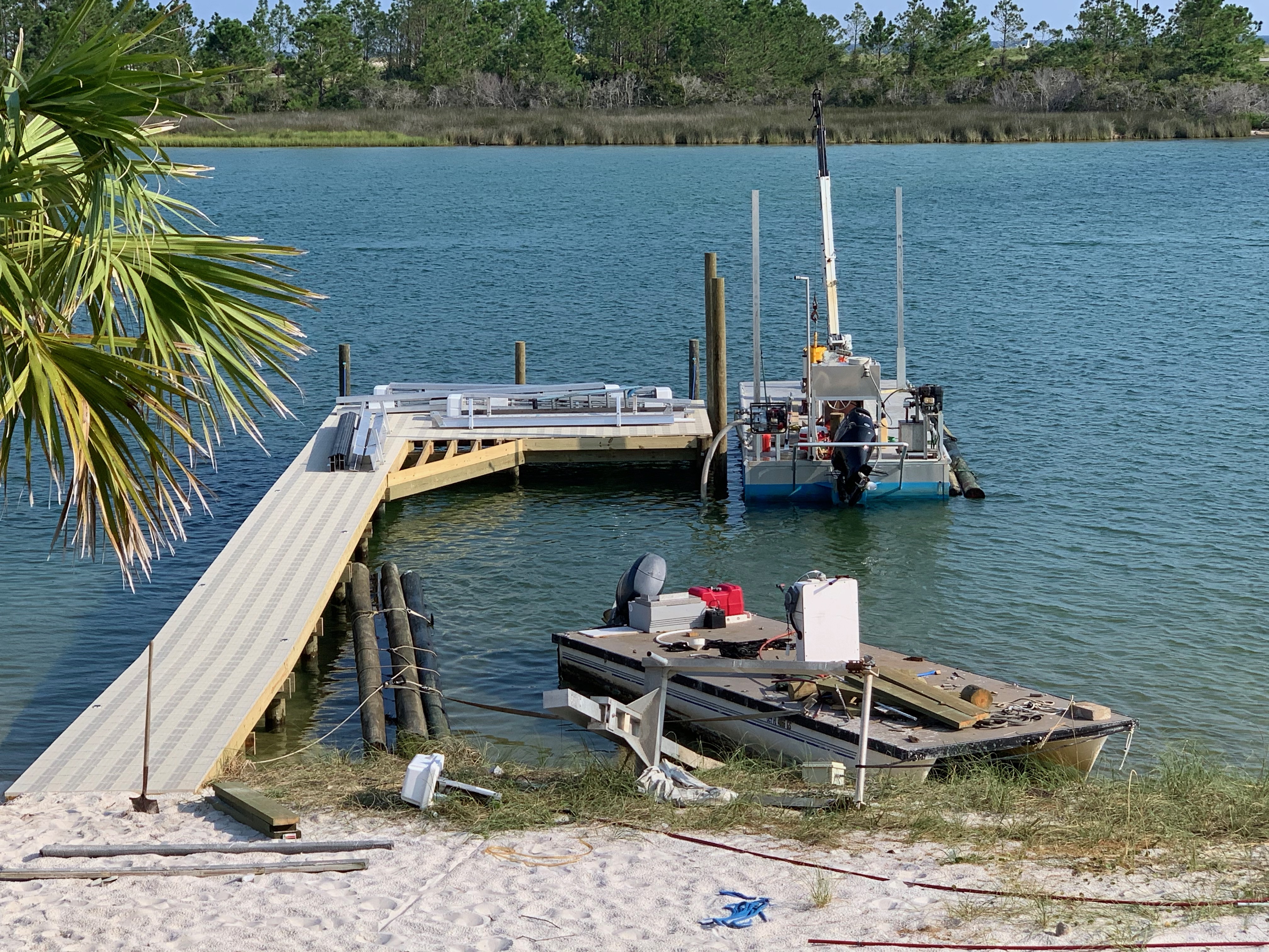 No crabby attitudes at the beach, our pier’s almost finished