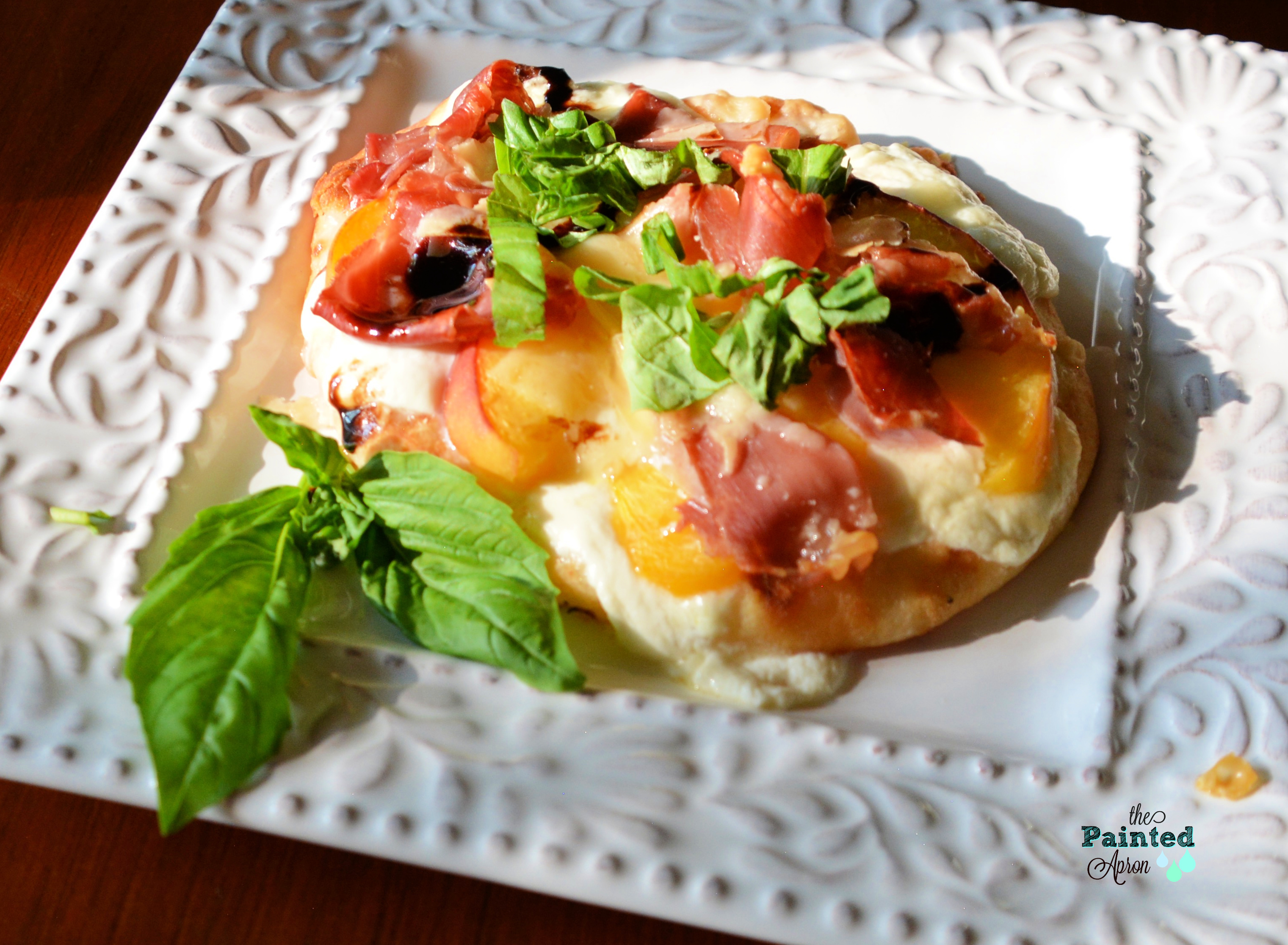 peach naan with prosciutto and basil
