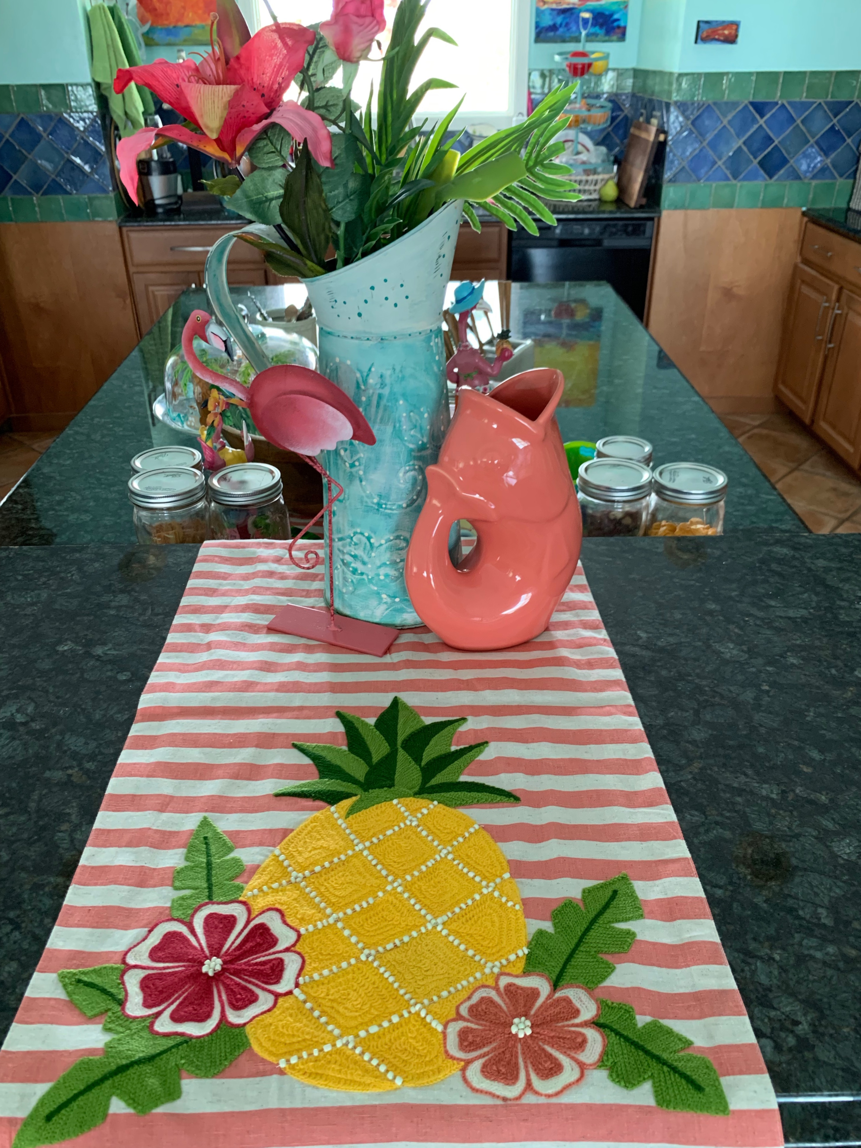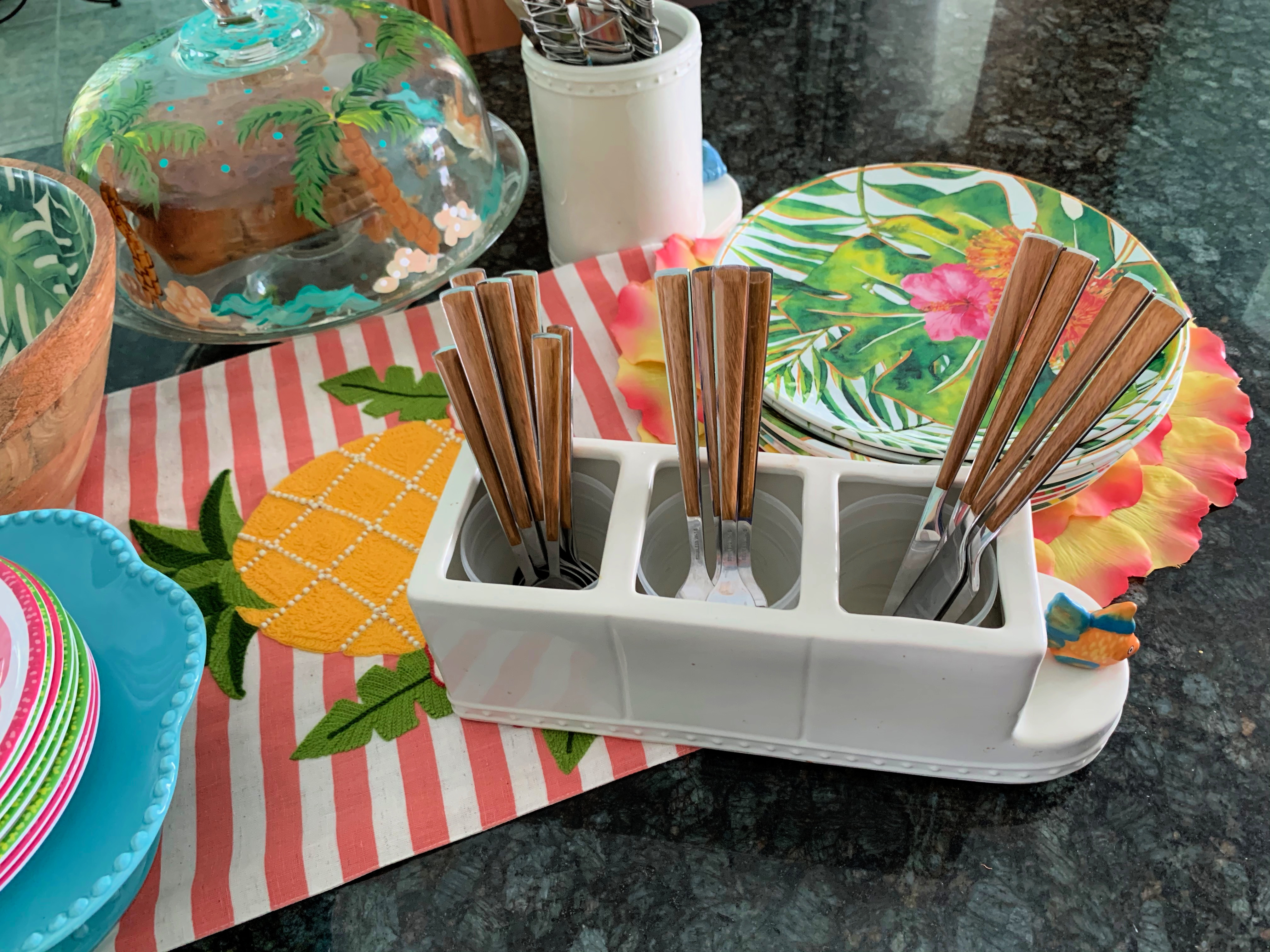 I thing you have a great system to keep your kitchen running efficiently and beautifully! Your attention to detail and organization makes for fun summer entertaining. Love the fun tropical theme and you have the perfect summer house to enjoy it. Connor has already started school so like you I feel summer slipping away. Have a wonderful Sunday…….