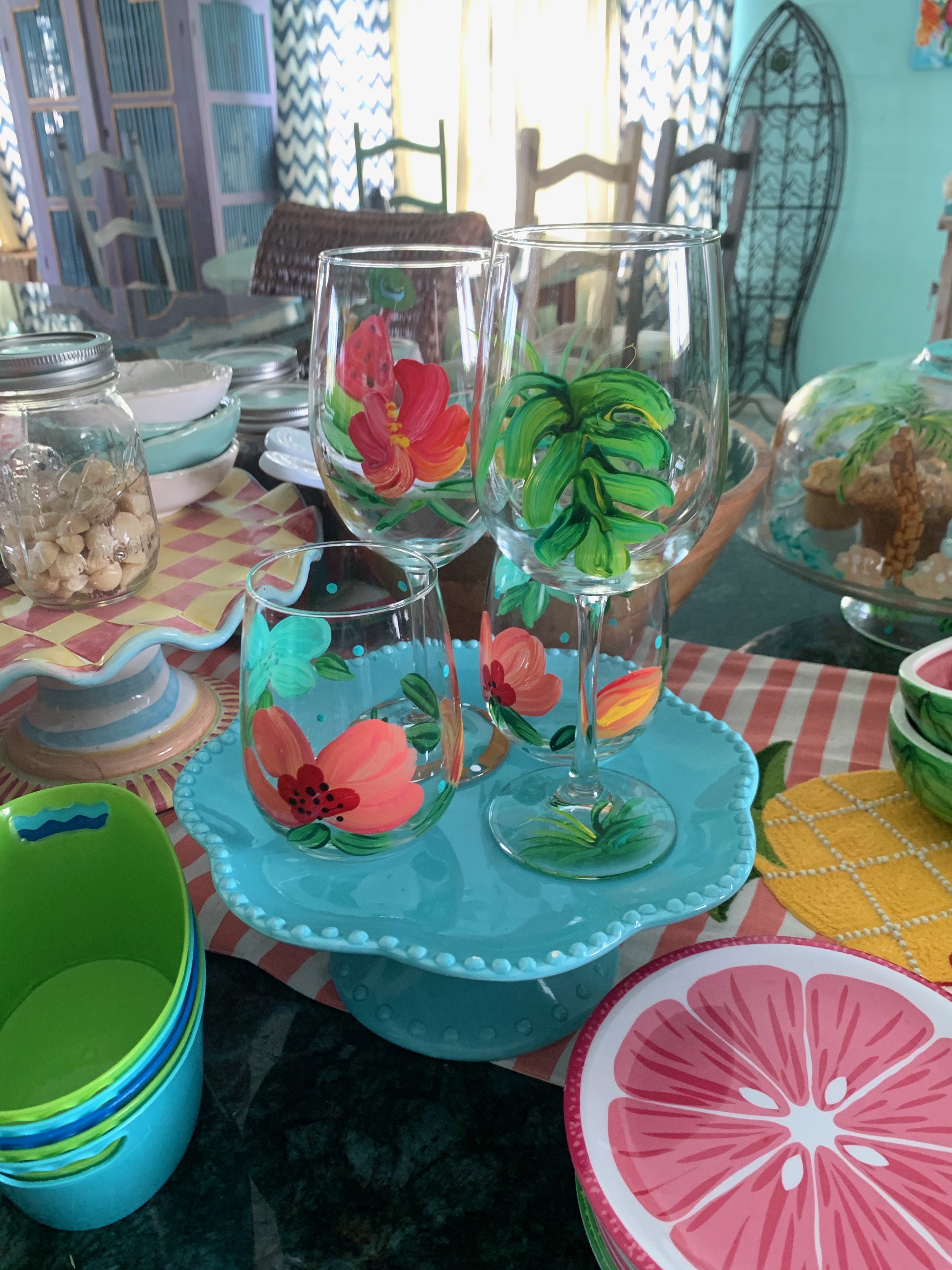 Tropical glasses are ready for a glass of wine or a Pineapple Cocktail