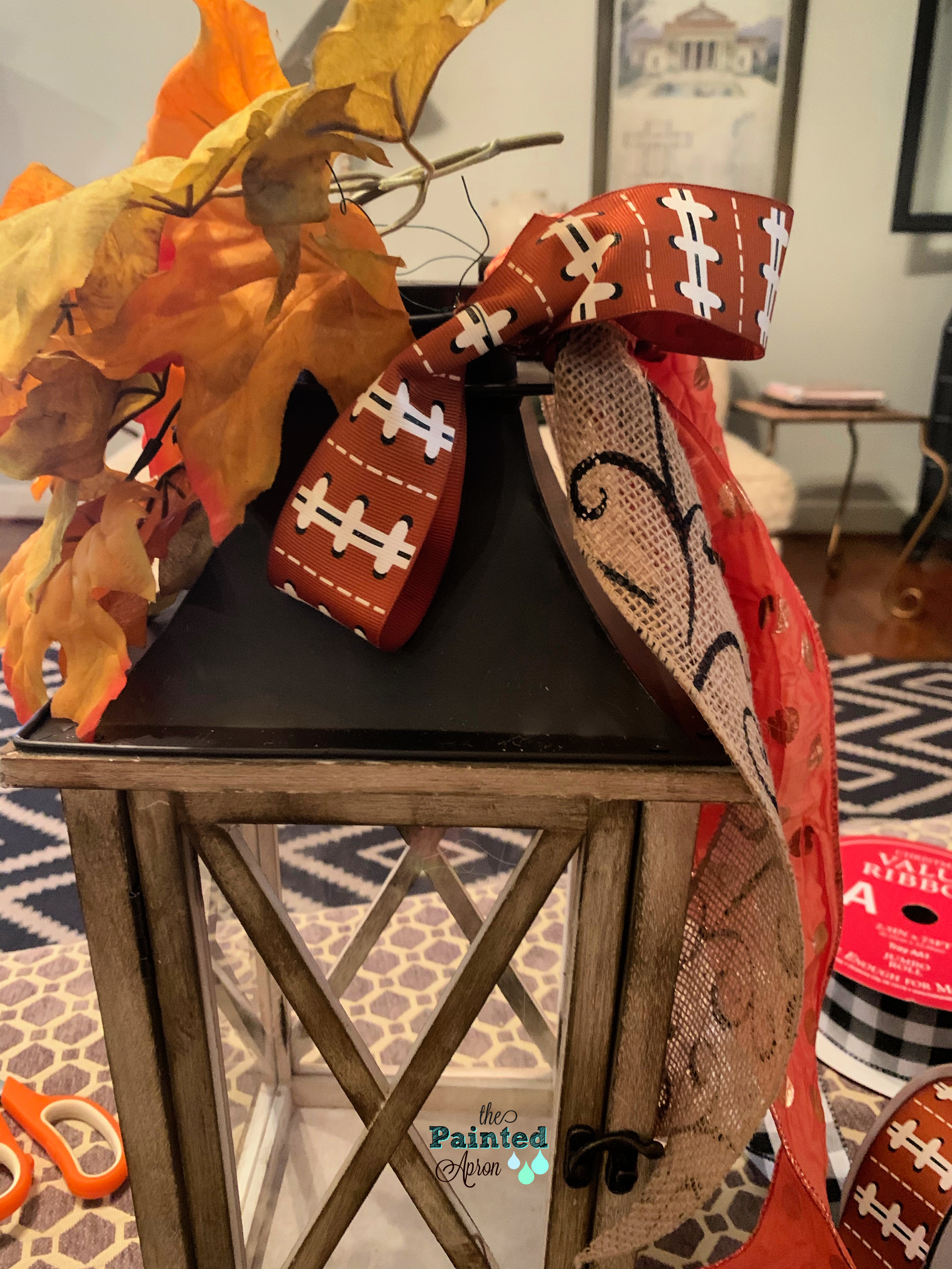 Jenna, the lantern is perfect for fall and so cute with the ribbons. It has been so hot that I haven’t gotten into the fall decorating. Can’t wait for Alabama football…Roll Tide!
