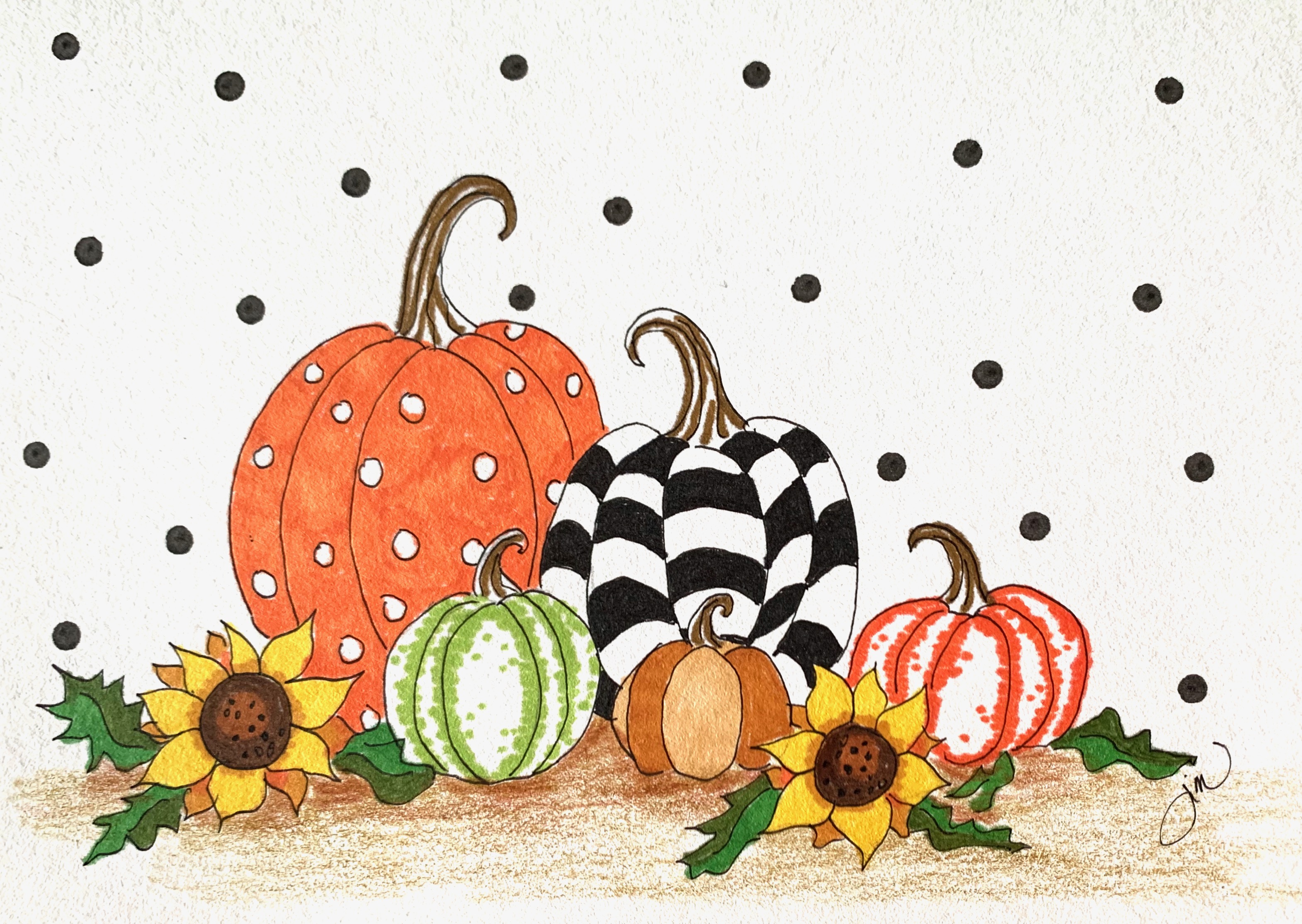 5. Your two colors on the brush really makes all the difference. I have pumpkins on my to-do list for this week (cards for fall). (First I have to finish up a shamrock St. Paddy’s day card order — this woman plans ahead!). I love the polka dots. I’ve done that before but not for ages, so thanks for the reminder. These are darling, as are all your live pumpkin creations!