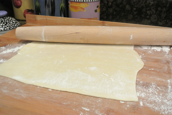 First flour the work surface so that the pastry doesn’t stick to the board